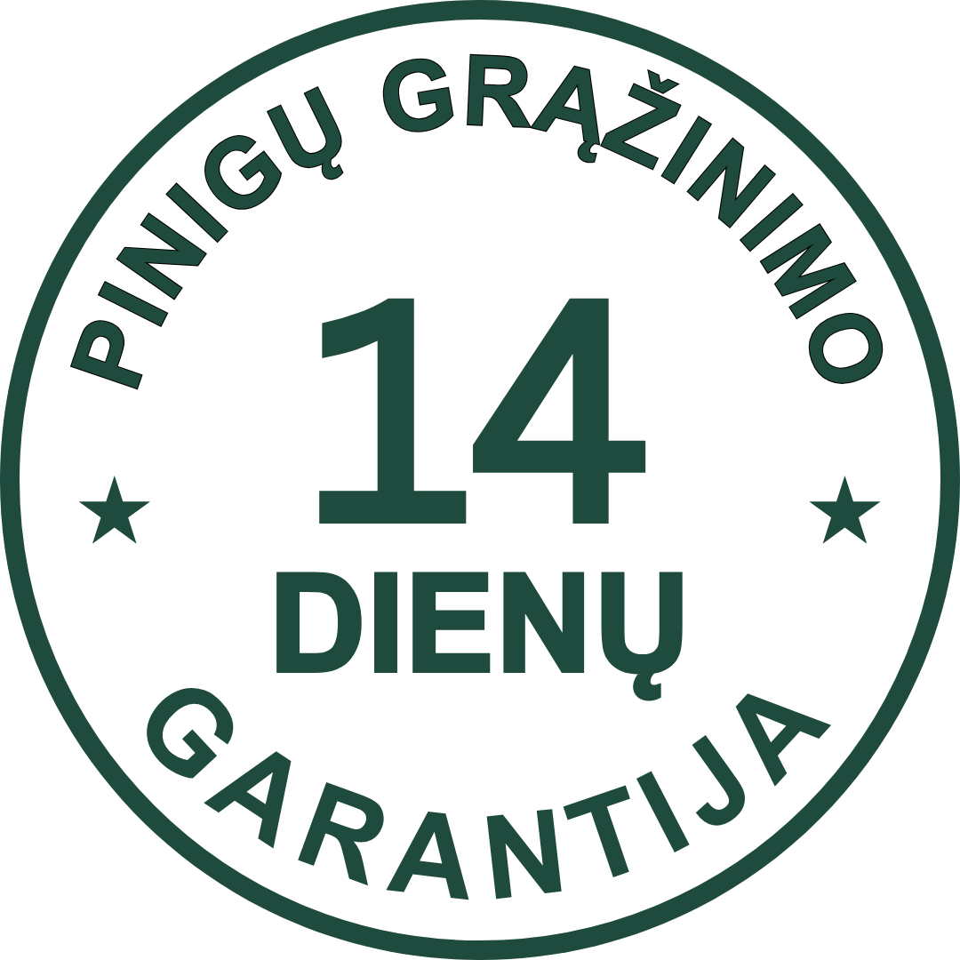 Visiems savo produktams suteikiame 14 dienų pinigų grąžinimo garantiją.